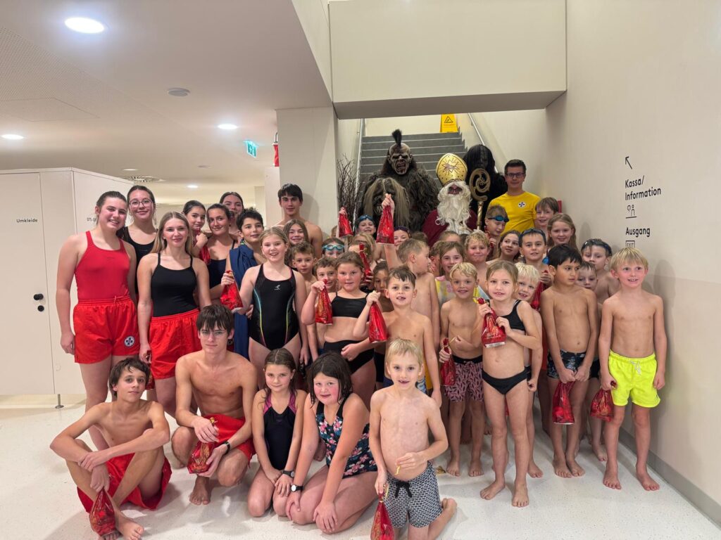 Er lobte die motivierten Schwimmer:innen und das Engagement unserer Trainer:innen. Nach ein paar gemeinsam gesungenen Liedern gab’s für alle ein Nikolaussäckchen.